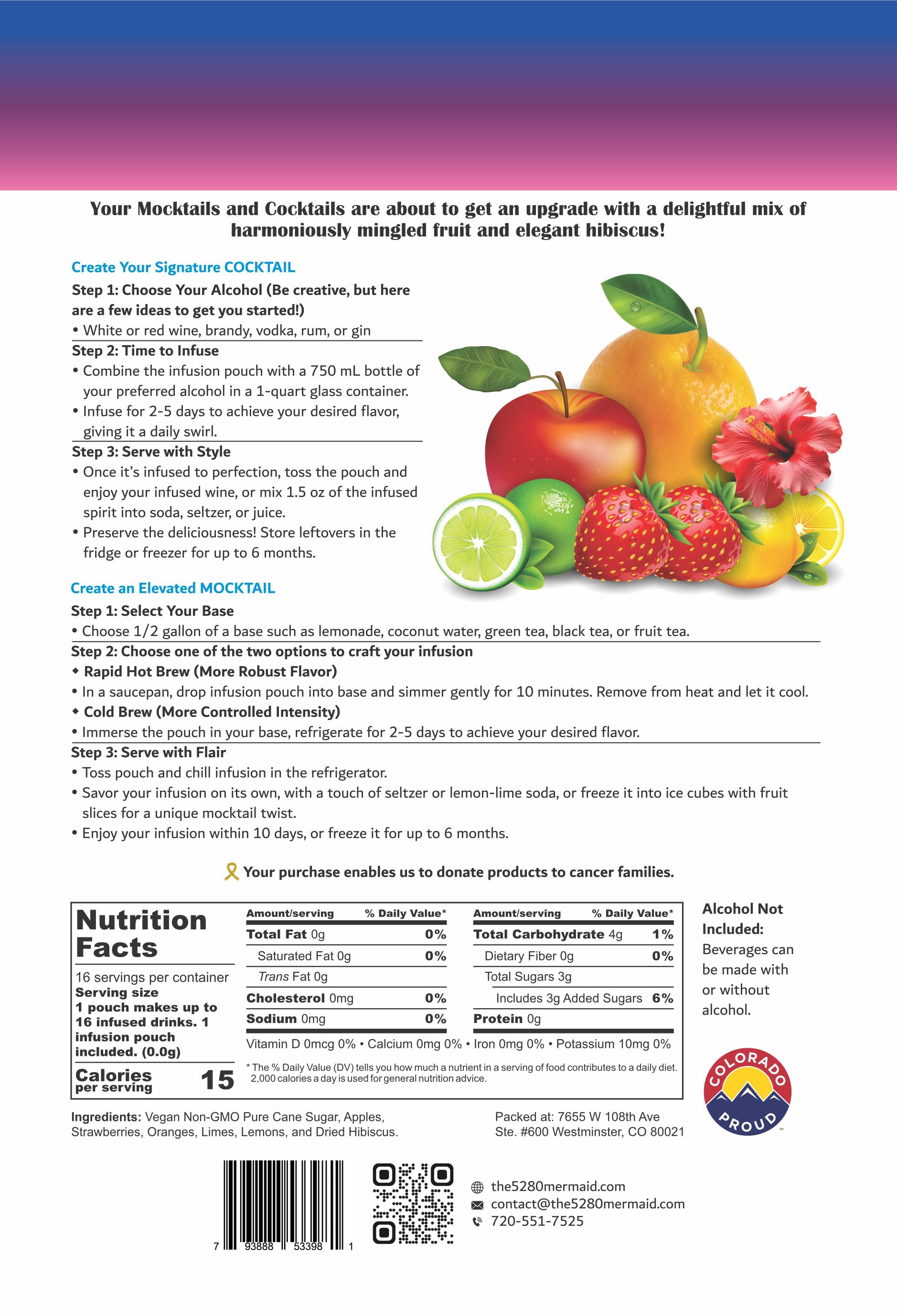 Ingredients: Sweet cherries, oranges, limes, lemons, strawberries, apples, culinary hibiscus and organic cane sugar.