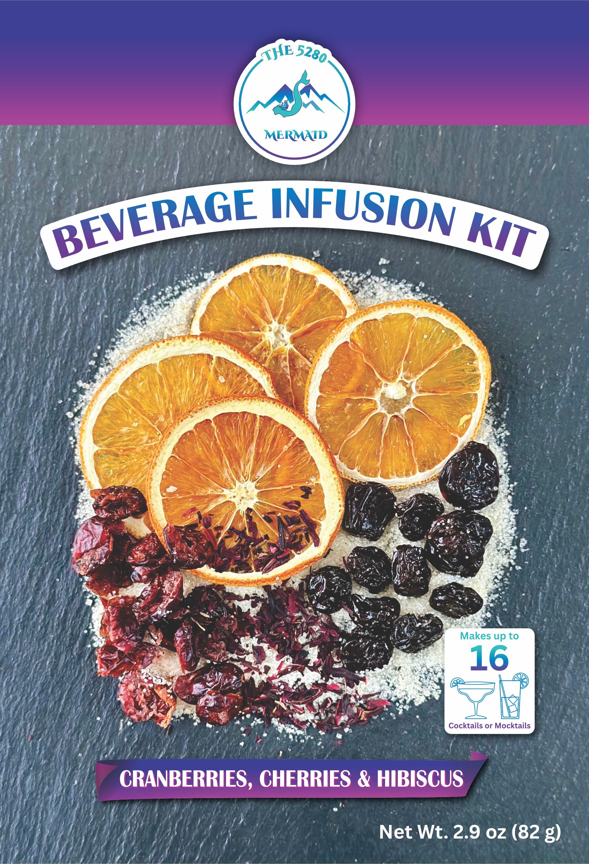 Cranberry, Cherry, Hibiscus Beverage Infusion Kit; Vodka or Rum.