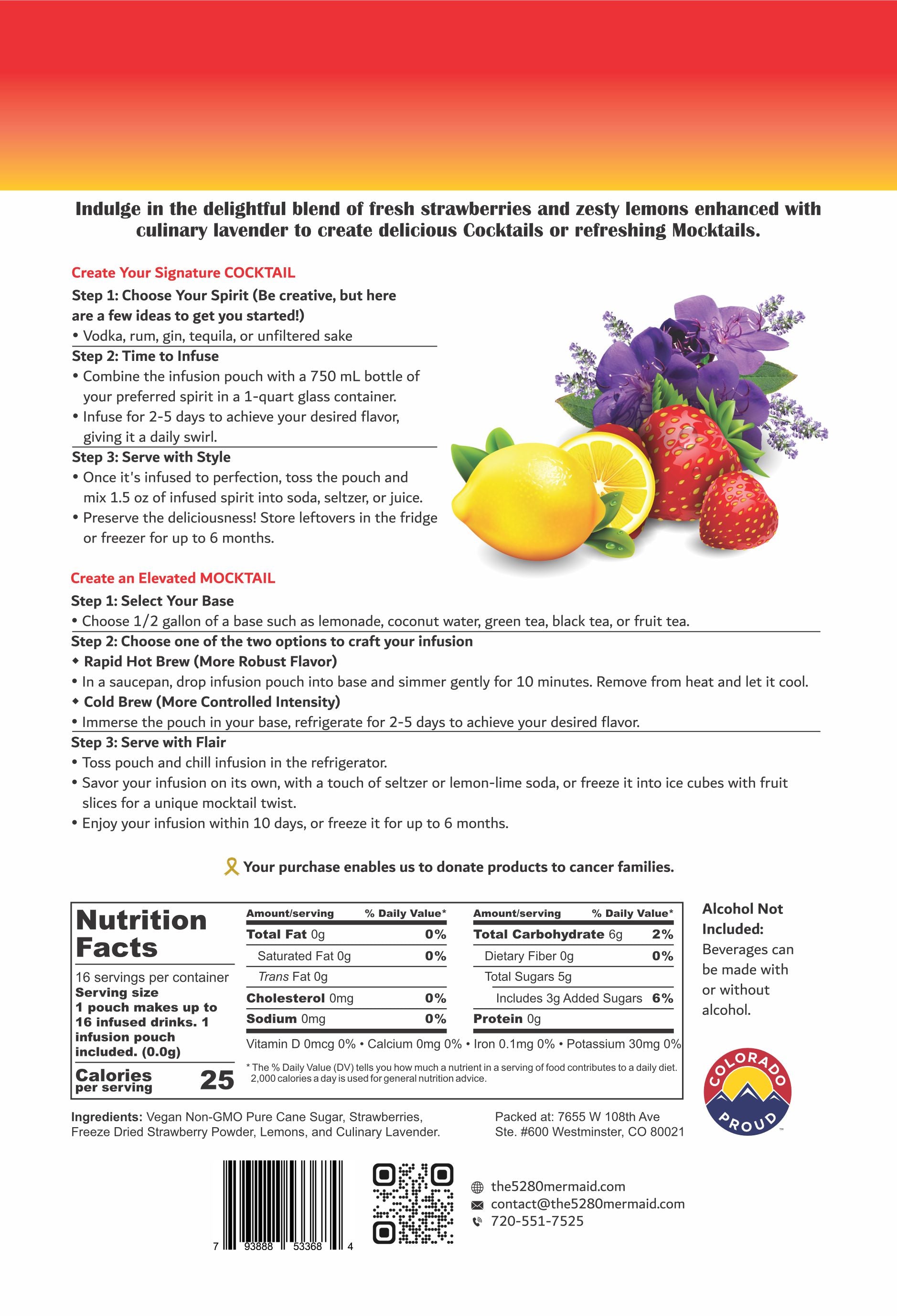 Ingredients: Strawberries, freeze dried strawberry powder, culinary lavender, lemons, organic cane & non GMO Turbinado sugar. No Artificial Ingredients Ever!