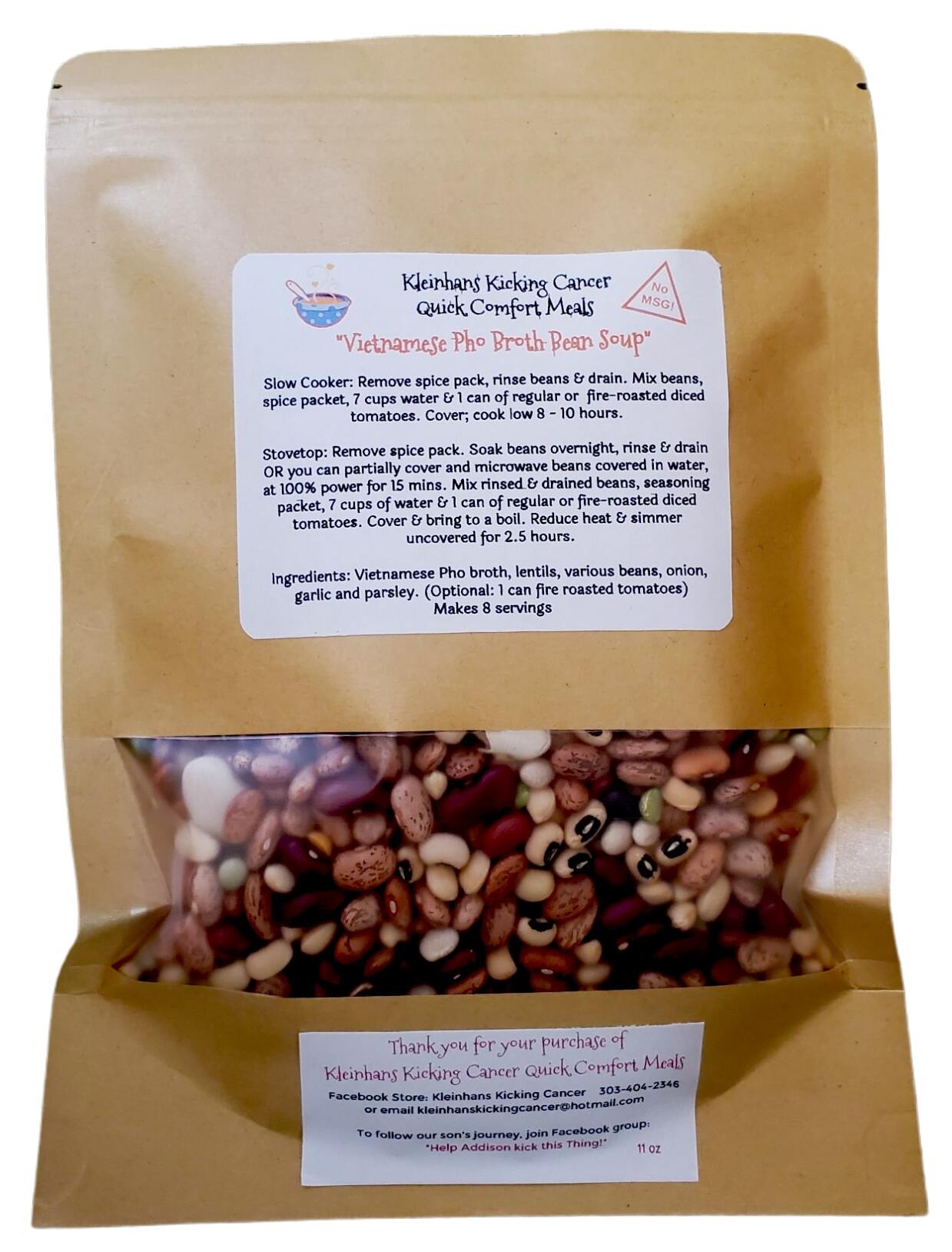 Ingredients: Vietnamese Pho broth, lentils, various beans, onion, garlic and parsley. Makes 8 servings.